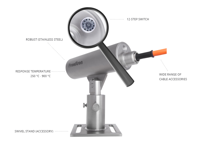 Strong, sturdy and durable. Compact devices up to 75 °C resp. 200 °C ambient temperature (Devices with optic and fiber optic cable even up to 290 °C).